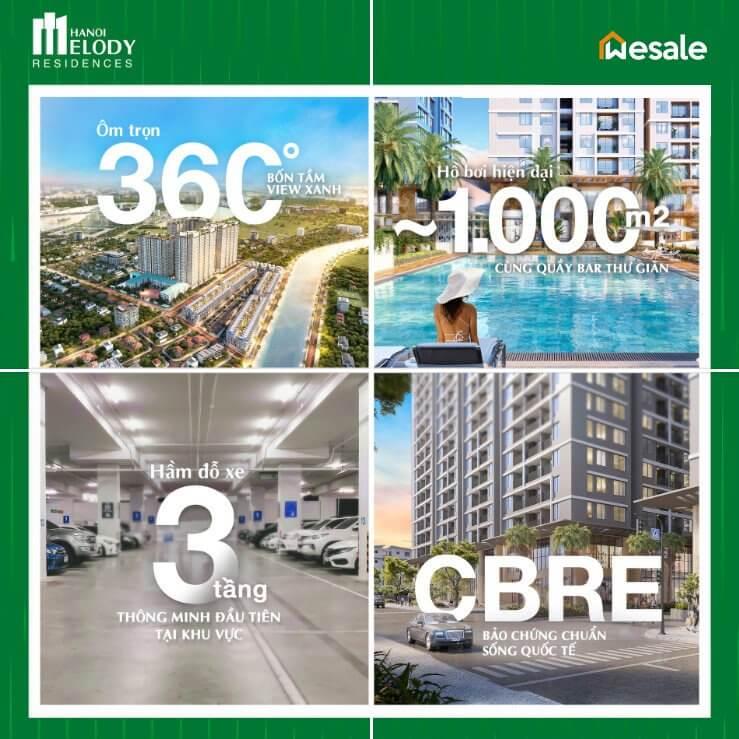 360 độ view xanh hiếm có: 100% căn hộ Hanoi Melody Residences sở hữu view xanh thoáng đãng hướng về sông hồ, công viên, tiện ích nội - ngoại khu tươi mát.