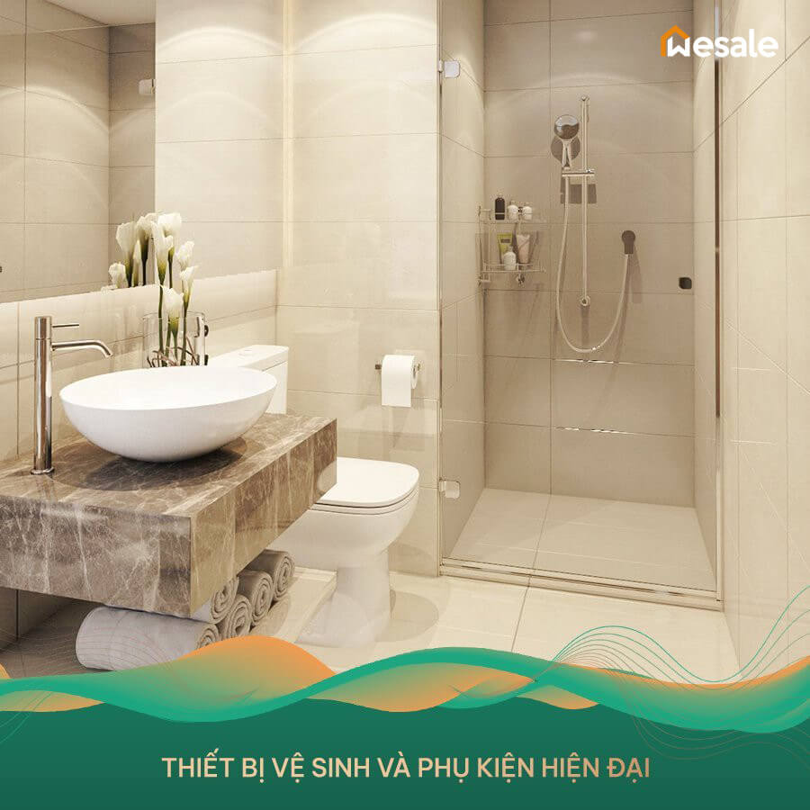 Thiết bị vệ sinh và phụ kiện: Lavabo, tủ Lavabo Inax/ Caesar, bồn cầu Inax/ American Standard, vách kính phòng tắm, gương lớn…