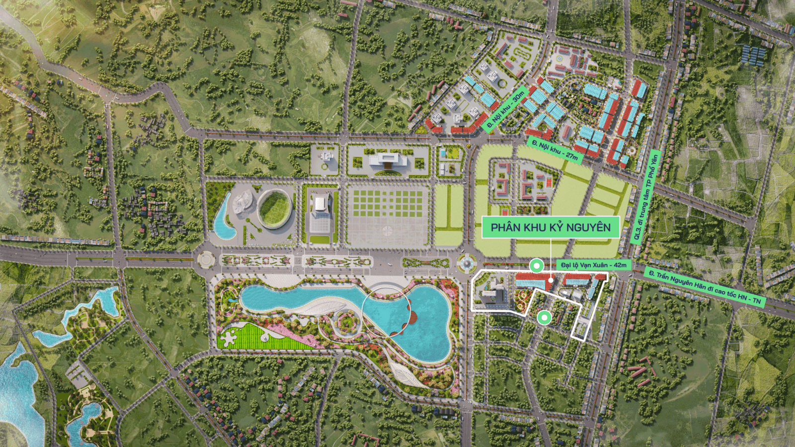 - Phân khu Kỷ Nguyên: Rộng khoảng 5,2 ha, thuộc phường Nam Tiến (cũ), với 146 căn liền kề và shophouse.