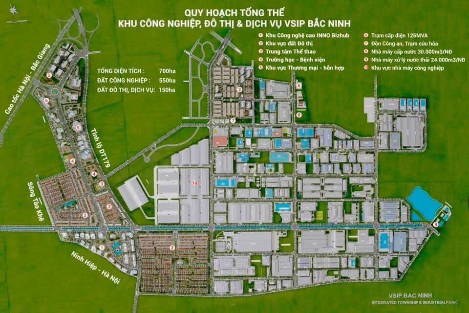 VSIP Bac Ninh Industrial Park (full name is Vietnam - Singapore Industrial, Urban and Service Park) was approved for investment policy on June 4, 2007 in Document No. 676/TTg-CN of the Prime Minister. Prime Minister. Accordingly, VSIP Bac Ninh industrial park is invested by Vietnam - Singapore Limited Liability Joint Venture Company on a total area of 700 hectares including industrial park (area of 500 hectares) and urban and service area ( area of 200 hectares). At the same time, Vietnam - Singapore Bac Ninh Industrial Park was officially added to the planning list of industrial parks in Vietnam.