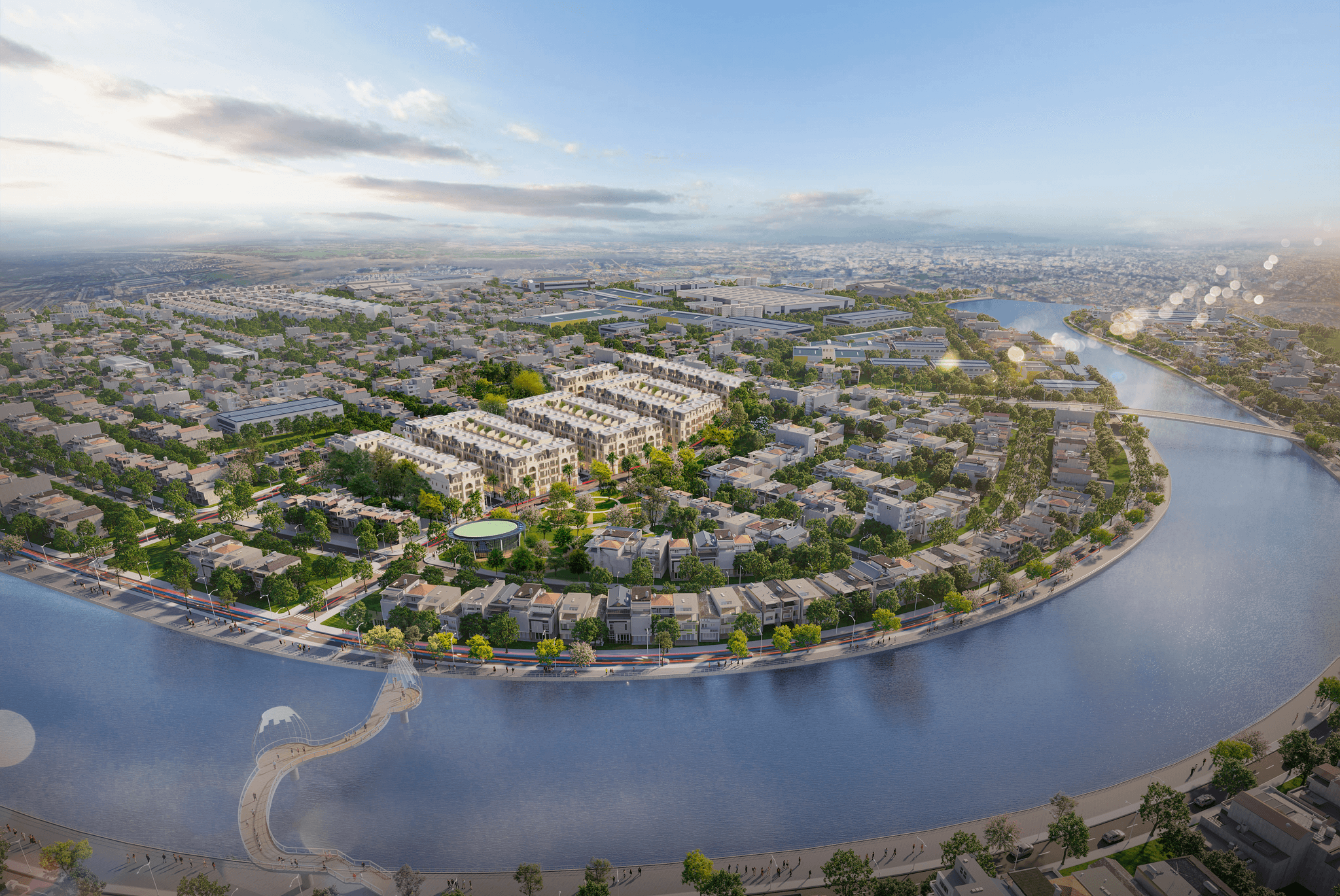 Vẻ đẹp của kiến trúc cảm hứng Châu Âu càng thu hút và sắc nét hơn trong không gian cảnh quan độc nhất vô nhị, giao hòa giữa sự lãng mạn và tinh tế phương Tây với một Hải Phòng hào sảng, phóng khoáng và thời thượng bao gồm dòng chảy sông Tam Bạc và cảnh quan xanh của 04 công viên cận kề bao xung quanh.