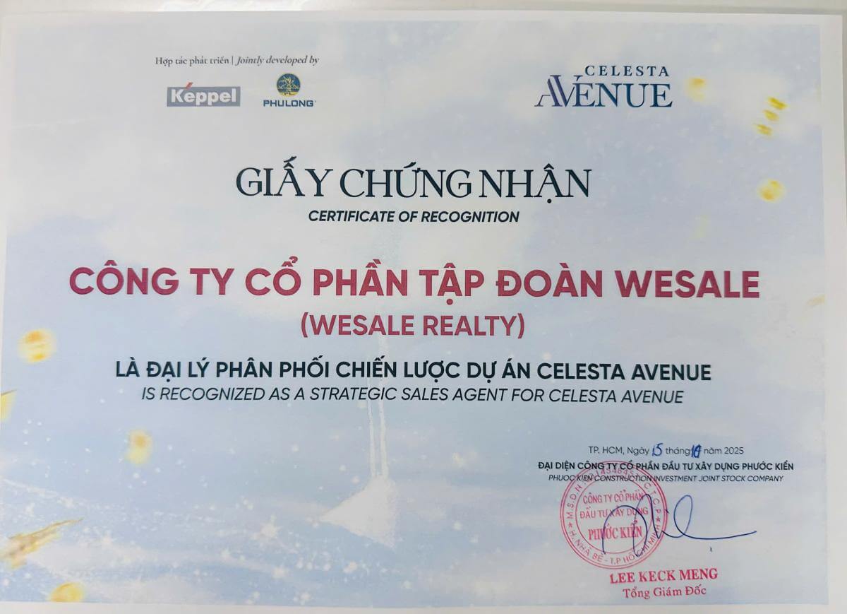 WeSale Realty chính thức trở thành Đại lý Phân phối Chiến lược (Strategic Sales Agent) của dự án Celesta Avenue – phân khu nhà phố thương mại cao cấp thuộc Khu đô thị Celesta City, được phát triển bởi hai chủ đầu tư uy tín hàng đầu: Keppel (Singapore) và Phú Long.